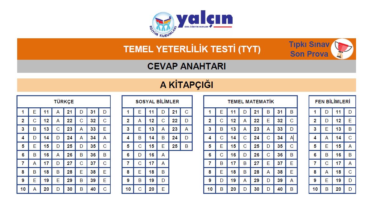 CEVAP ANAHTARI TIPKI TYT+AYT 2023